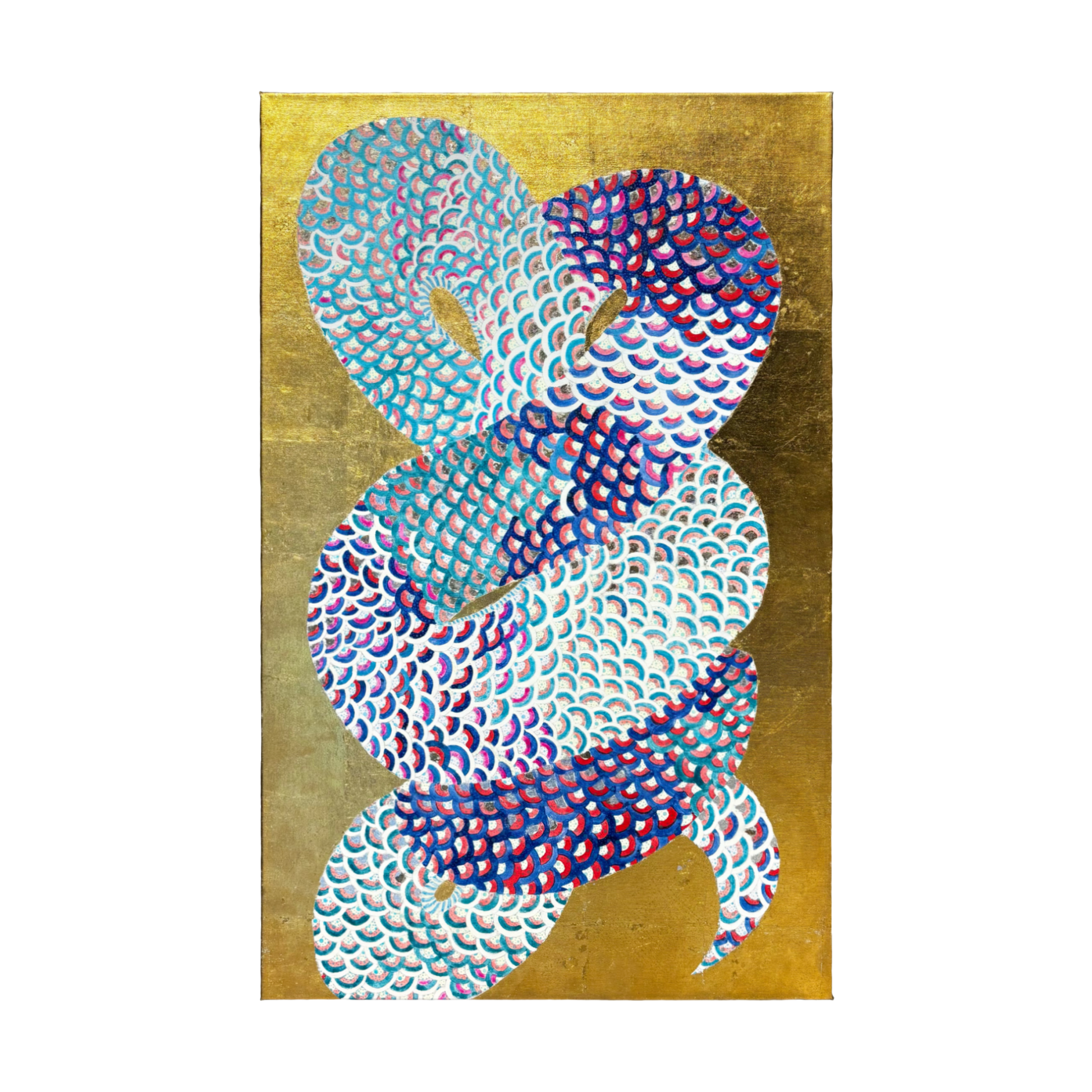 コンディション:概ね良好。キャンバスに歪み、全体の所々に絵の具や金箔の僅かな剥がれあり。