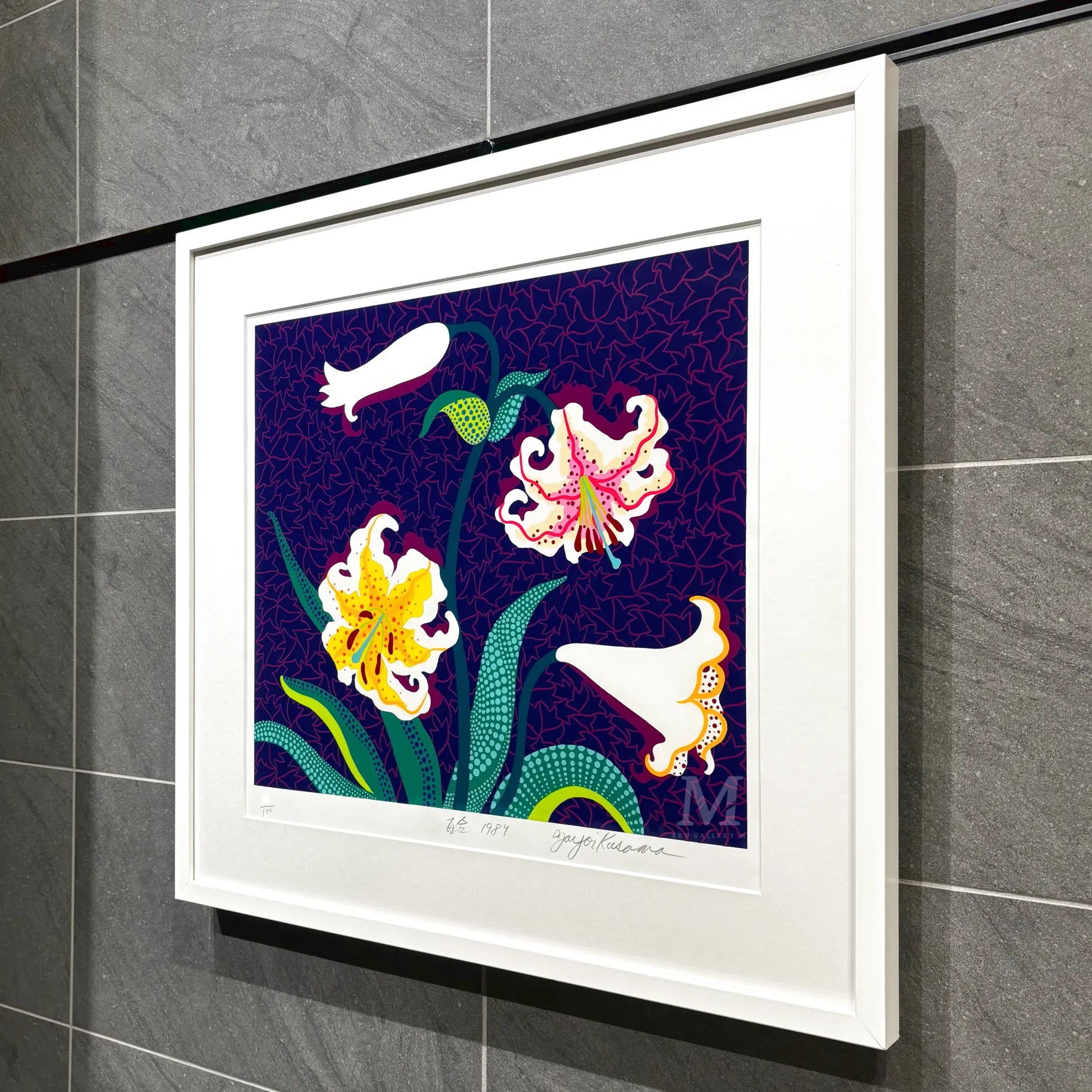 日本を代表する女性作家。「前衛の女王」と称され、国際的に高い評価を得ている。幼少期より見ていた幻覚から生まれた水玉模様や網目模様を繰り返し用い、埋めつくすことで、「自己の消滅」「無限」「永遠」を表現する。特によく描かれるかぼちゃやハイヒール、帽子などは草間作品を代表するモチーフとなっている。